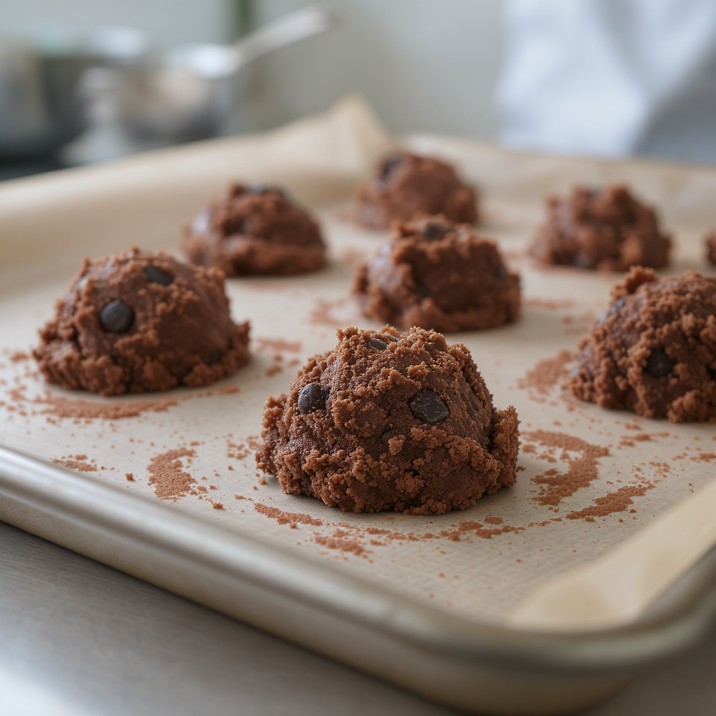 - Scoop: Work quickly! Drop tablespoon-sized mounds of the mixture onto the prepared baking sheets.